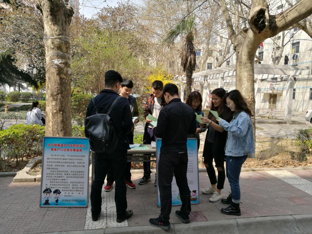 为宣传落实西安市公安局出台的“2.0版户籍新政”,我处于3月15日中午,在校园食堂门口积极宣传户籍新政政策。