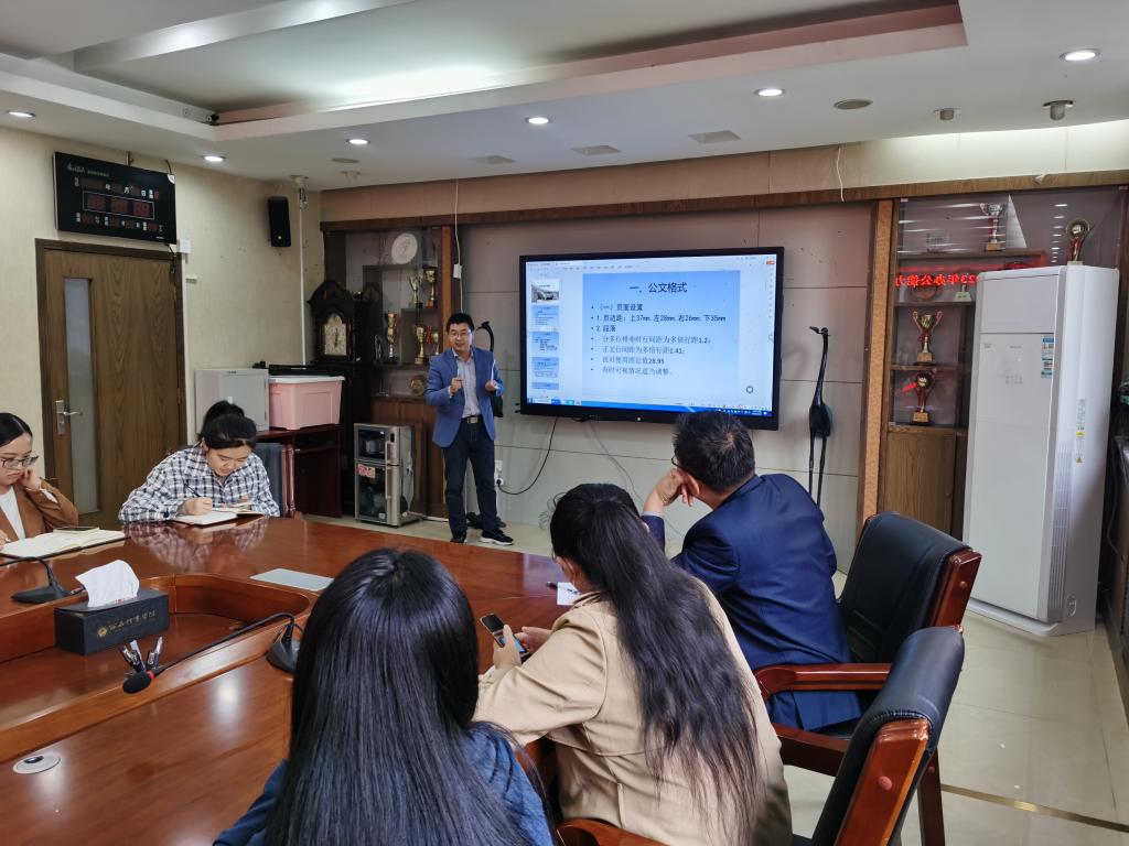 10月27日下午,2023年下半年办公能力培训在行政楼二楼大会议室举行,机关各部门文件起草人员、各二级学院办公室主任和教学秘书共计45人参加培训,会议由党委校长办公室组织