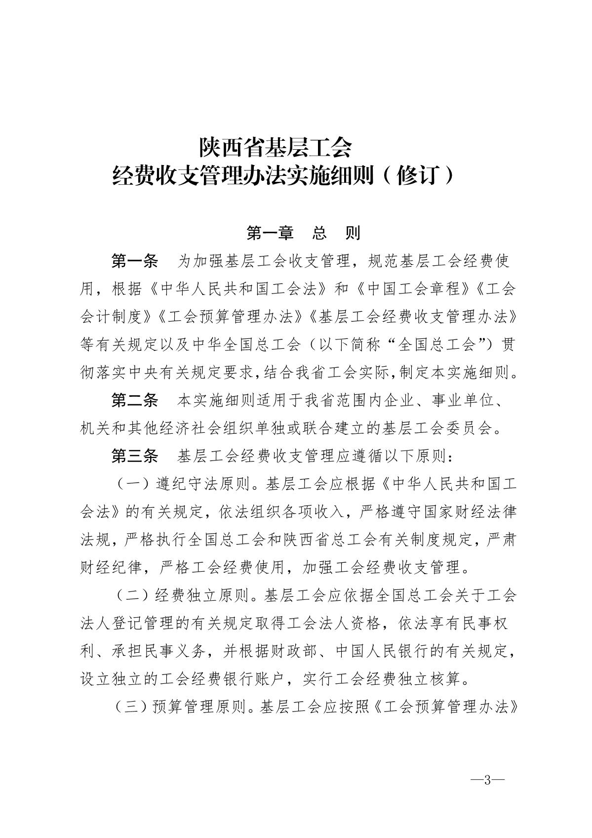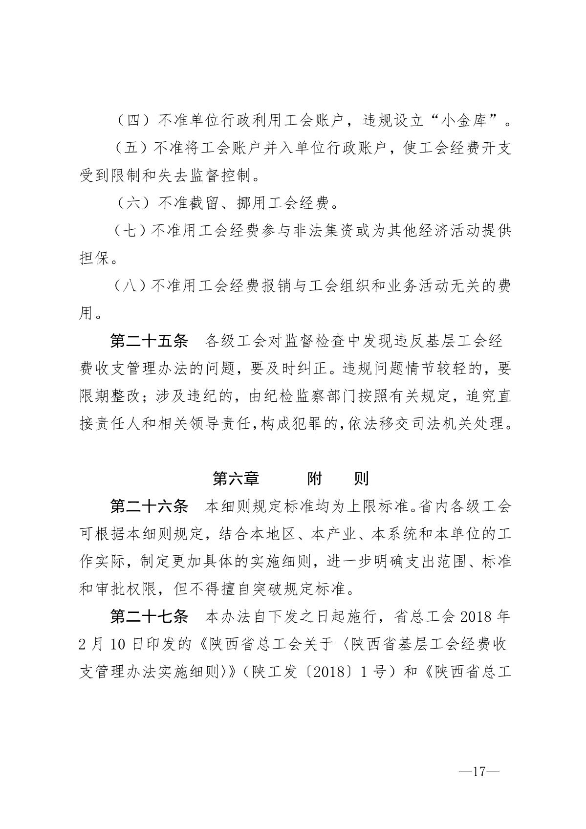 《陕西省基层工会经费收支管理办法实施细则》陕工发【2019】20号