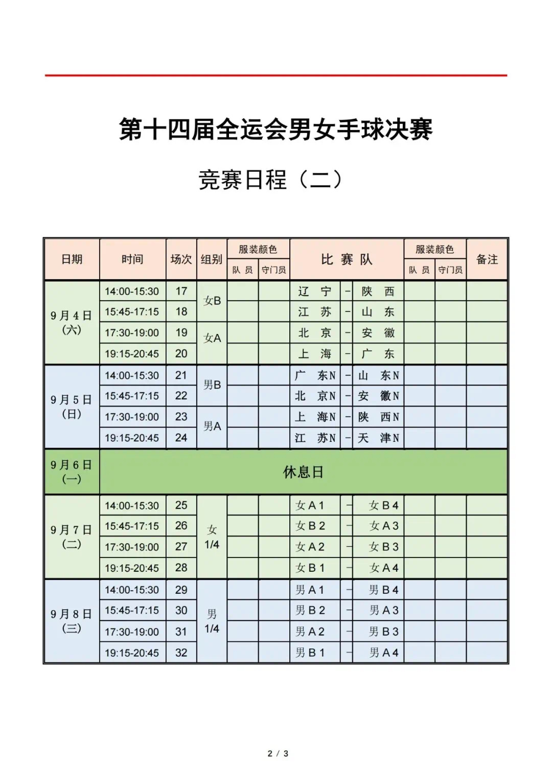 男女手球决赛竞赛日程
