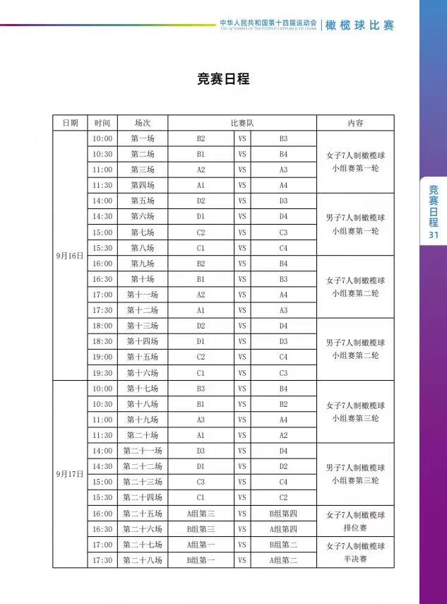 本届全运会,预赛和决赛(半决赛)门票价格实行差别定价:橄榄球预赛门票价格,A档:80元/张,B档:50元/张;橄榄球决赛/半决赛门票价格,A档:100元/张,B档:80元/张