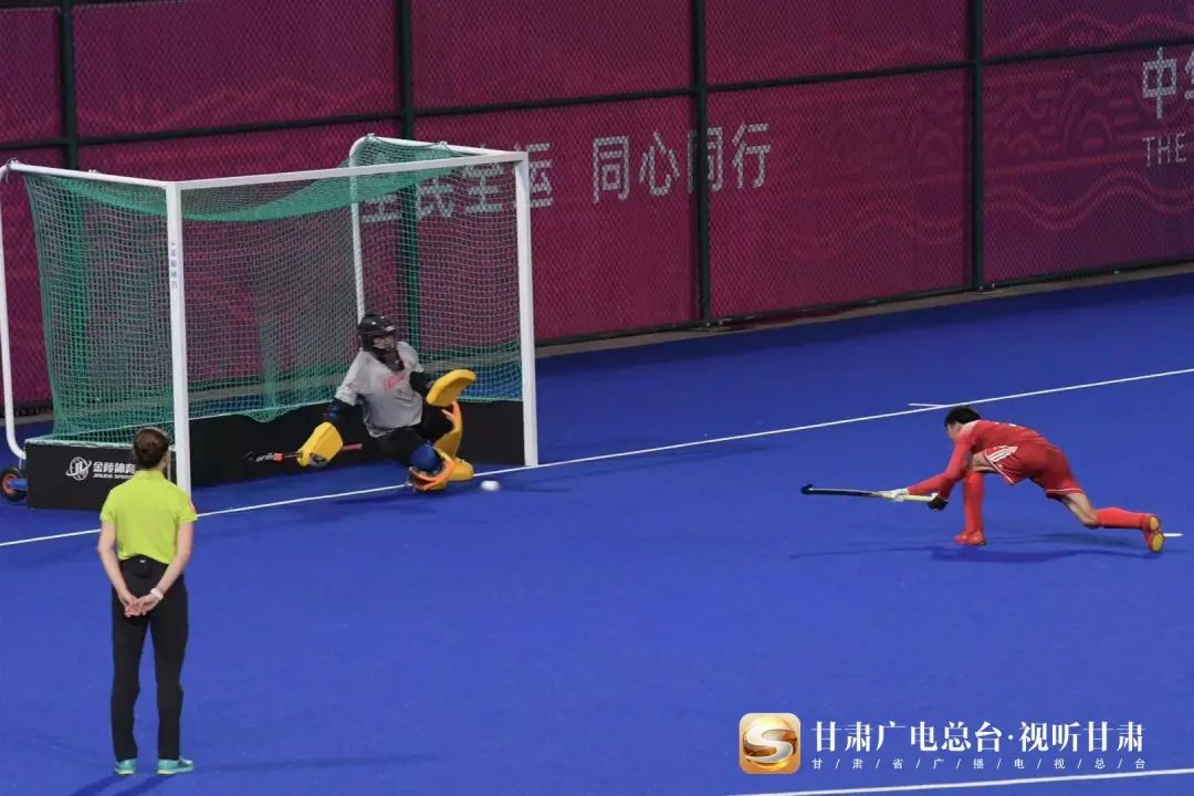 2021年9月21日,中华人民共和国第十四届运动会男子曲棍球1/4决赛在陕西西安体育学院新校区举行,甘肃队对阵天津队,双方在常规比赛时间内2:2战平,比赛进入23米球,经过每组各5个罚球的决战,最终甘肃队以4:3击败天津队,成功挺进四强!