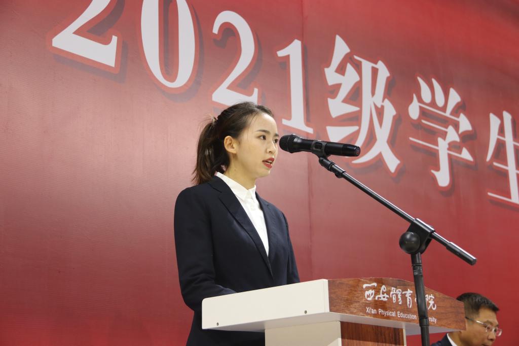 艺术学院2021级学生陈琦作为含光校区本科新生代表发言时说,虽初次远离家乡,来到陌生的环境,但与和蔼可亲、平易近人的老师、同学们相处的十分释然,身在西体、心在西体、爱在西体、梦在西体,她将努力拼搏,完成自己的梦想;在和西体校园、西体人、古城西安、伟大时代的相遇中,继续风雨兼程,展示自己人生最璀璨的年华。