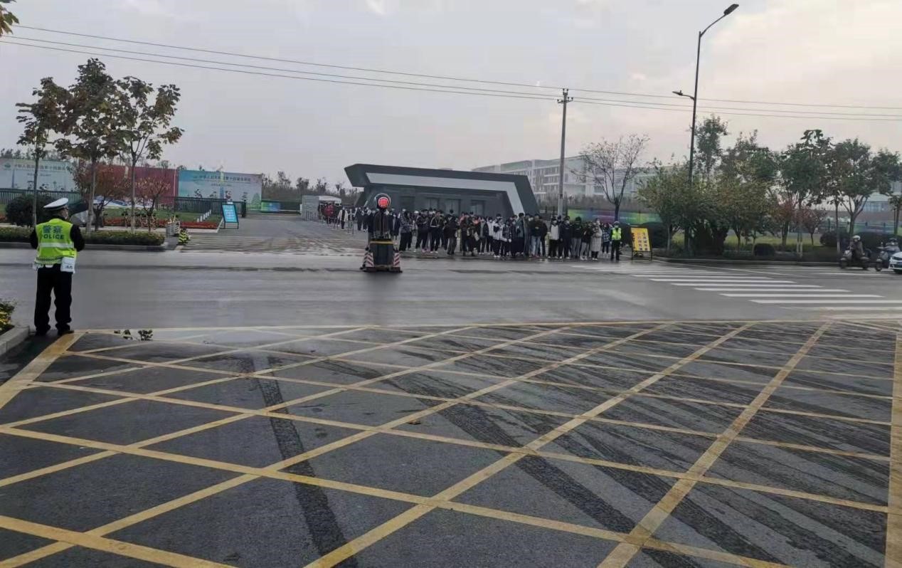 鄠邑校区管委会积极协调鄠邑区交警部门,在道路两端安装提示牌、地面铺设震荡线、增设临时交通灯,培训我校安保人员利用临时红绿灯对道路管控,尤其是上下课高峰时段,做好东西区交通道路管控,确保师生东西区通行安全。