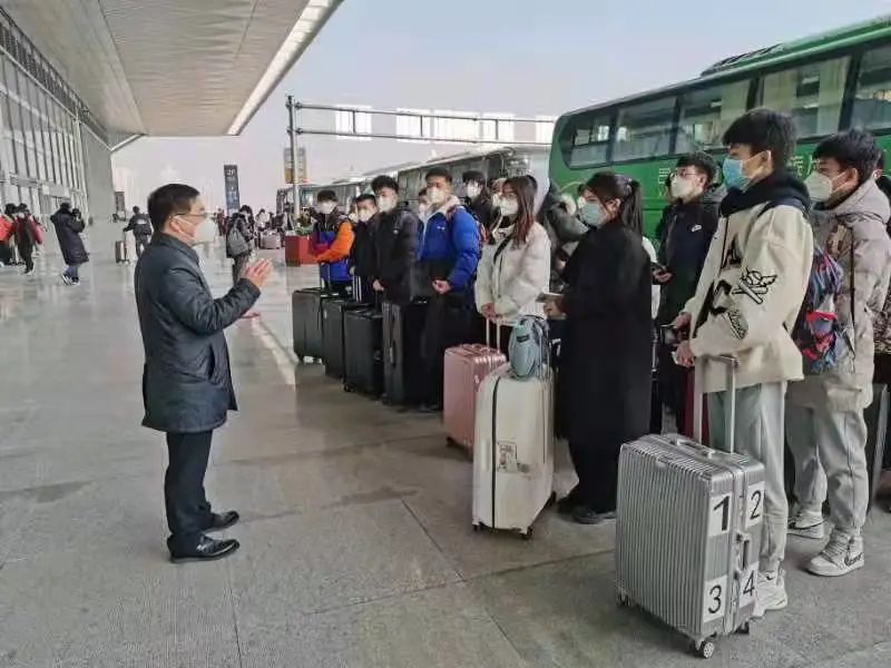 1月19日起,鄠邑校区安排车辆“点对点”护送校区学生到“一场四站”返乡乘车。