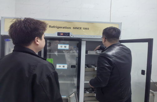 在学生餐厅,负责人深入后厨操作间,查看燃气报警装置、食品留样柜及餐具消毒记录,随机抽检员工健康证,要求餐饮单位严守“食材溯源、加工规范、卫生达标”三道红线,确保假期留校师生用餐安全。