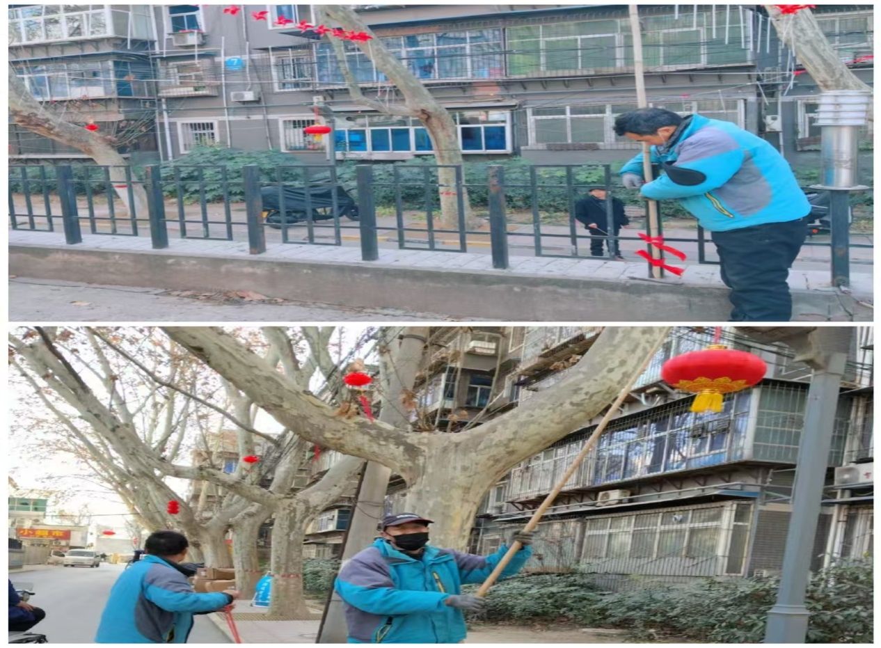 本次装点以安全美观、节能温馨、文化赋能为原则,重点打造院区出入口、主干道等核心区域。工作人员分工协作、细致施工,从提交装点方案--物品采买—组装零件—现场布置,每一名员工不畏辛苦,欢欢喜喜的进行春节装点。在十号楼前装点彩旗与彩灯、红灯笼与马年主题装饰,每个灯杆上挂上大红灯笼,家属区东门悬挂风车、流星雨彩灯等,整体氛围庄重热烈、雅致温馨。夜幕降临,灯火交映,园区处处流光溢彩,年味十足。