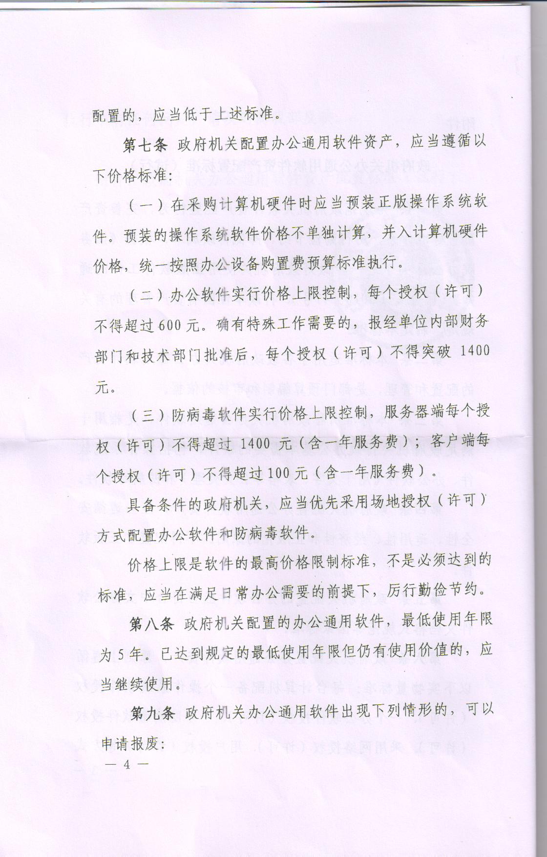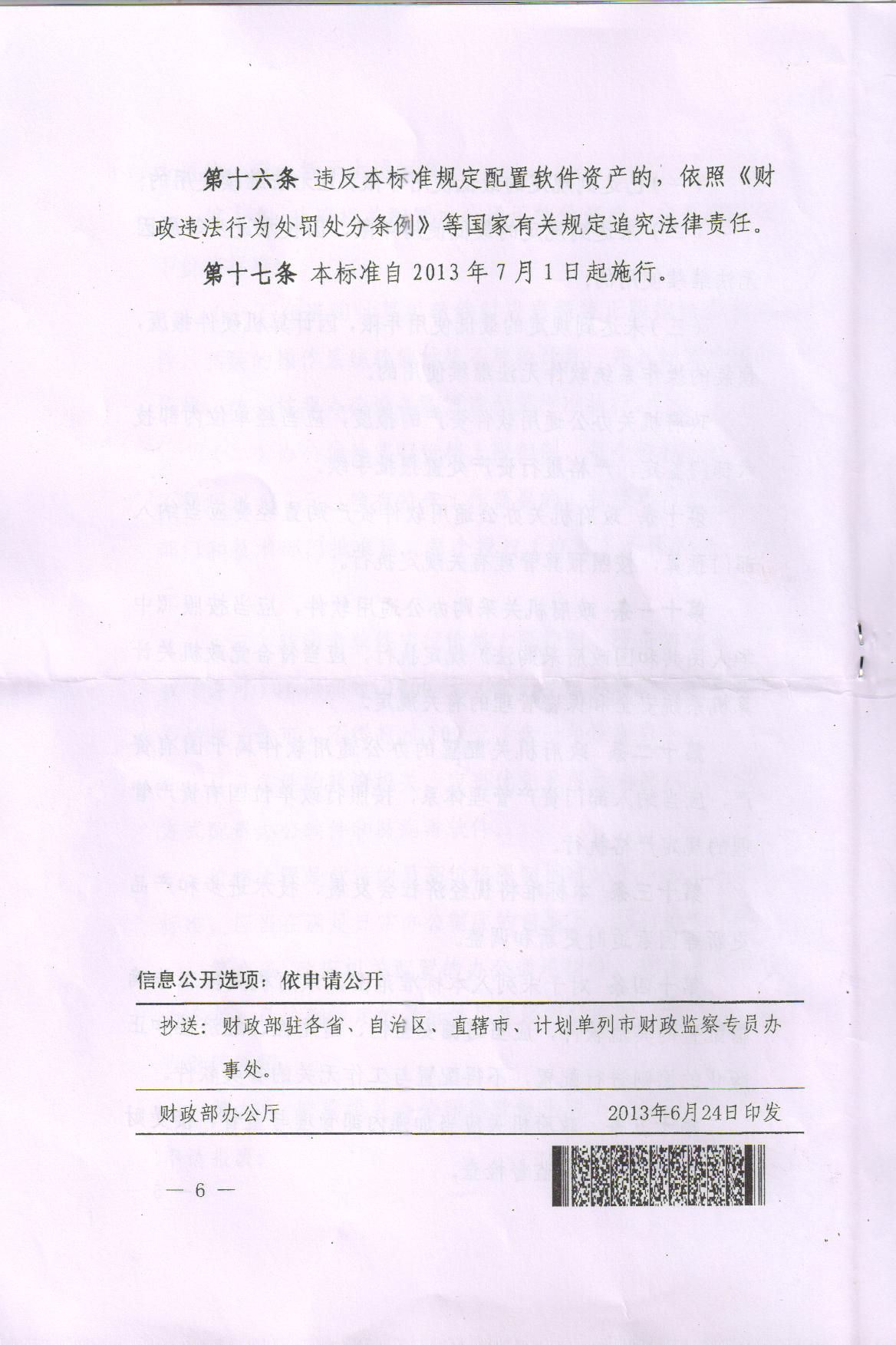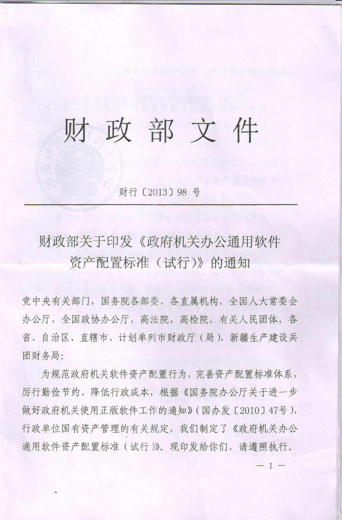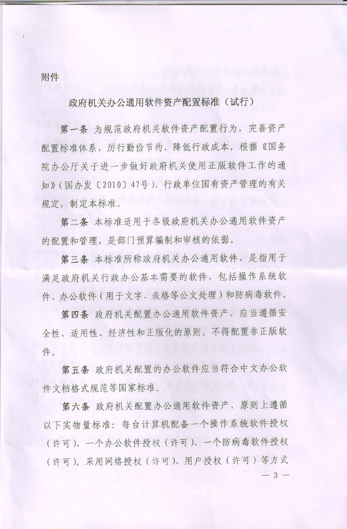 陕西省财政厅转发财政部印发《政府机关办公通用软件资产配置(试行)》的通知