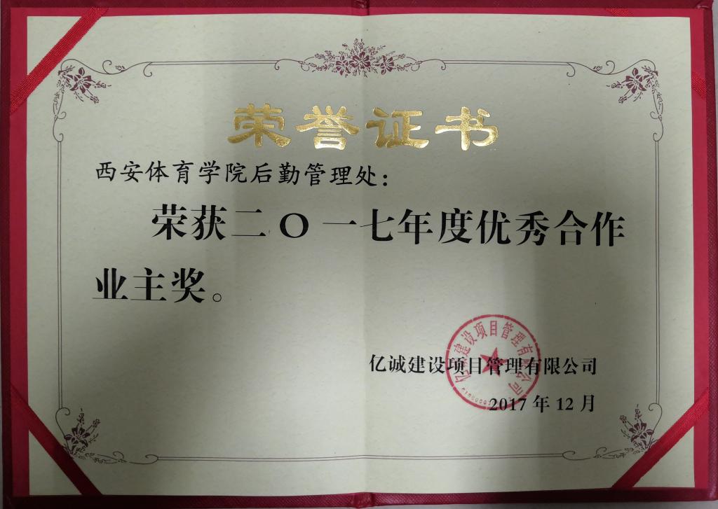 西安体育学院后勤管理处荣获“2017年度优秀合作业主奖”