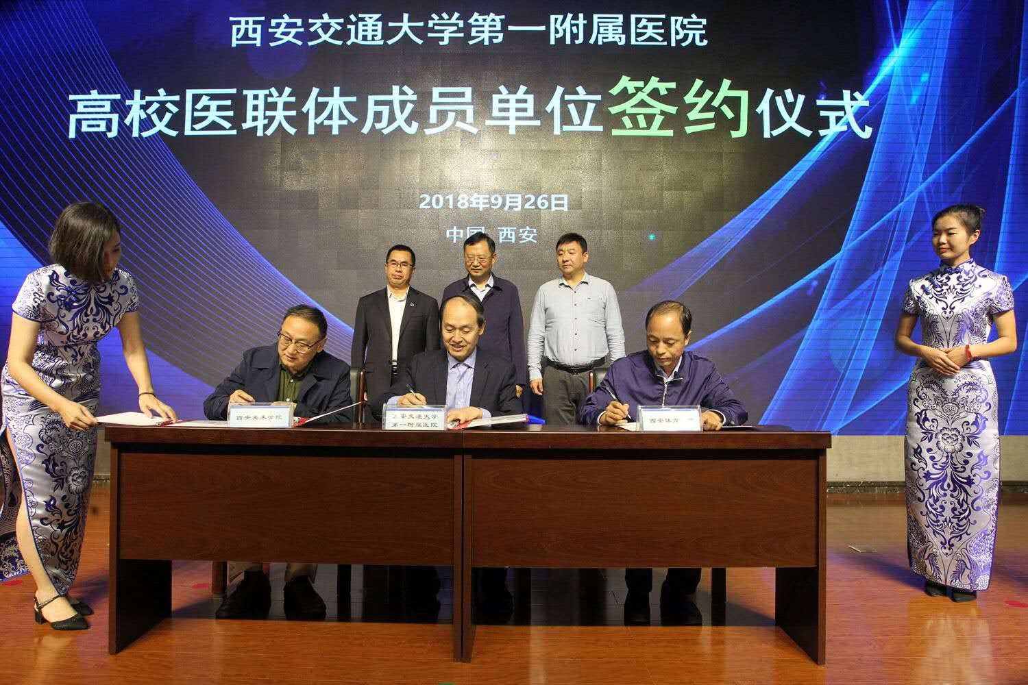 9月26日下午,我院与西安交通大学第一附属医院签订了陕西省高校医联体合作协议。省高教工委高巍副巡视员、省教育厅体卫艺处领导、交大一附院领导、十几所高校校领导等人员参会。我院副院长李富生、学工部副部长孙峰、校医院院长何昌谋参加了陕西省高校医联体成员单位签约仪式。