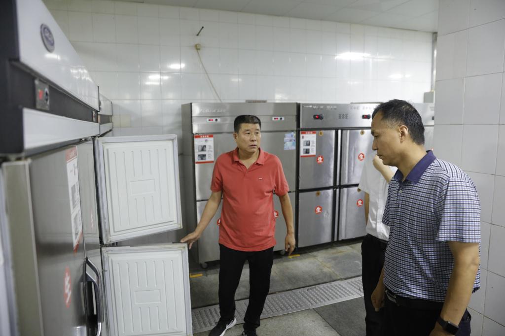之后共同调研了教学实验医院、学生餐厅、室内田径馆等地,对消防设施、水电安全、食品安全等进行重点检查。
