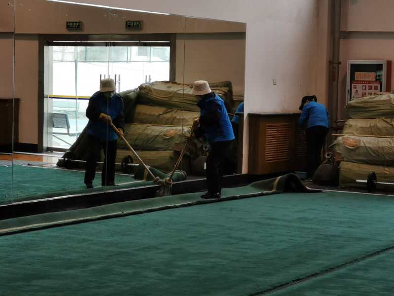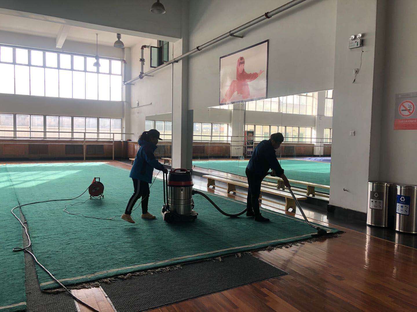 场馆中心工作人员对我校场馆(地)进行全面清洁、消毒,对教学器材、器具等易接触物品进行重点消毒,工作人员认真、专业、细致、周到,合理使用消毒液、消毒水,在保证上课环境健康安全的同时避免过度消毒。