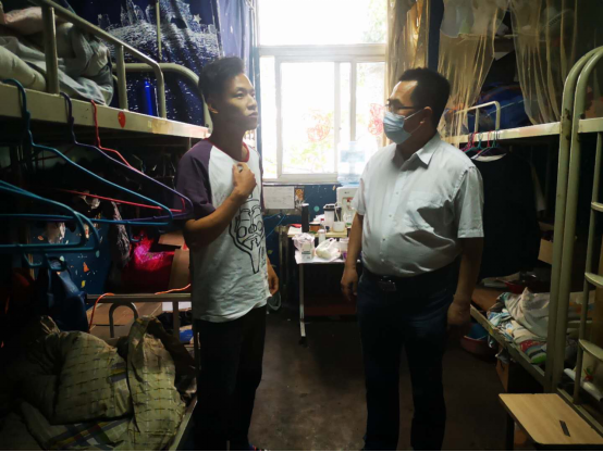 2020年5月8日我校第一批学生返校,校长朱元利、党委副书记刘子实、分管校领导李富生在后勤管理处(集团)处长许伟、副处长黄岗等相关负责人陪同下检查后勤防疫相关工作开展情况。朱元利、刘子实检查学生餐厅,实地查看学生错峰就餐方案实施情况,询问学生饮食情况,强调,学生餐厅一定要注意科学合理消毒通风,加强饮食安全把控;李富生到访学生公寓,亲切问询学生近况,叮嘱学生注意个人防护,尽快适应返校复课节奏,以积极的心态面对毕业求职。