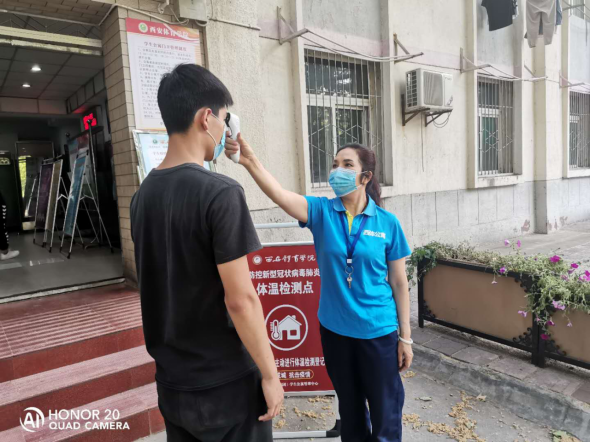附楼办公体温检测166人次(老师18人,安装工17人,招办11人,考试技术11人,志愿者100人)
