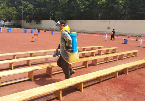 (一)后勤管理处(集团)保洁绿化中心在对工作人员进行体温检测、登记后,严格按照校医院要求做好我校校园环境、教室清洁、通风、消毒工作。