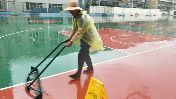(三后勤管理处(集团)场馆中心在对工作人员进行体温检测、登记后,严格按照校医院《场馆消毒指南》要求做好场馆(地)清洁、消毒、通风及师生体温检测工作,具体如下: