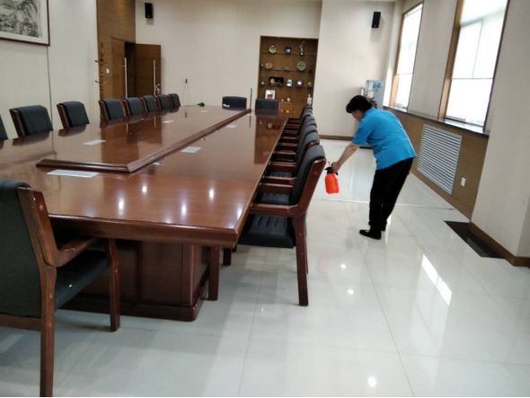 (一)后勤管理处(集团)保洁绿化中心在对工作人员进行体温检测、登记后,严格按照校医院要求做好我校校园环境、教室清洁、通风、消毒工作。
