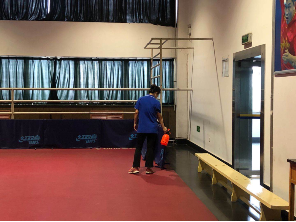 (三后勤管理处(集团)场馆中心在对工作人员进行体温检测、登记后,严格按照校医院《场馆消毒指南》要求做好场馆(地)清洁、消毒、通风及师生体温检测工作,具体如下: