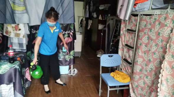 (二)后勤管理处(集团)学生公寓管理中心在对工作人员进行体温检测、登记后,严格按照校医院《学生公寓消毒指南》要求做好学生公寓清洁、消毒每日2次,通风工作每日3次,每次30分钟,以及学生体温检测工作。