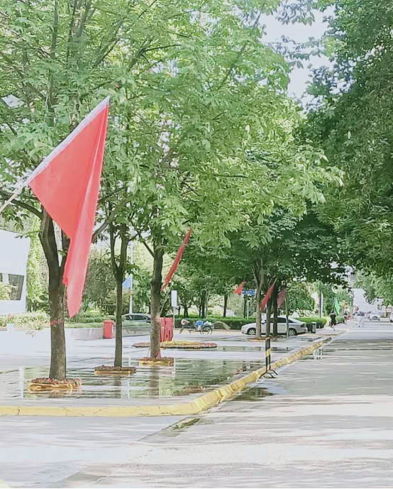 美化校园,渲染氛围。为了给返校参加毕业典礼的学生营造一个安全舒适的环境,物业中心加大了对校园环境卫生的清洁力度,按照校医院要求严格对校园进行消杀,精心设计校园景观,在行政楼、教学楼、田径馆等处放置花箱,种植多种花卉。在校园主干道插了200多面的彩旗,让每位教职工、毕业生及学生家长切身感受到了西体大家庭的温暖。
