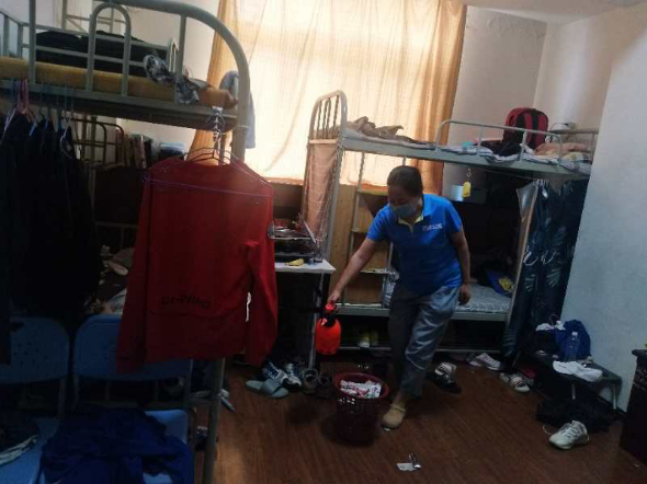 (一)后勤管理处(集团)学生公寓管理中心在对工作人员进行体温检测、登记后,严格按照校医院《学生公寓消毒指南》要求做好学生公寓清洁、消毒每日2次,通风工作每日3次,每次30分钟,以及学生体温检测工作。