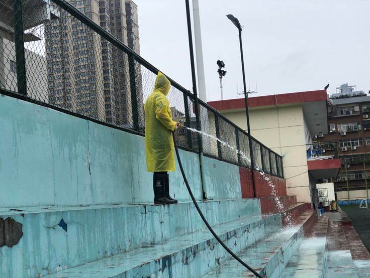 今日开始对场馆外围进行大清洗