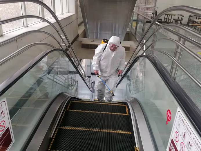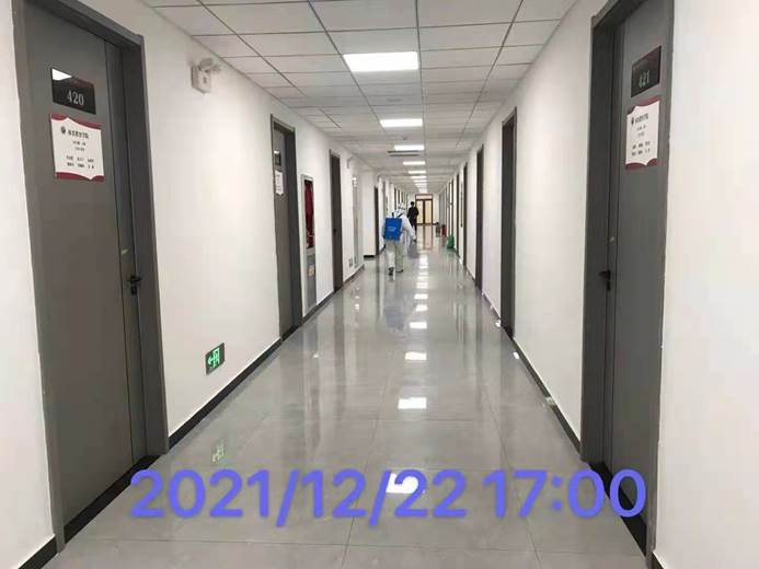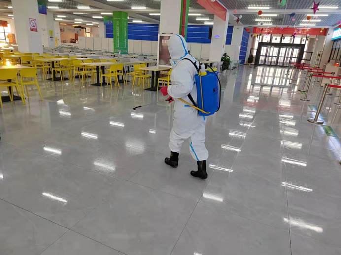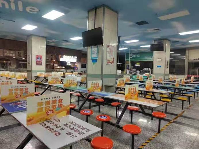 各中心工作人员对学生公寓、教学楼、各场馆(地)、学生餐厅、家属区等公共区域进行每日2次消杀工作,持续做好校区内各场所的消毒工作;物业中心工作人员及时做好校园卫生保洁工作,每日清运垃圾约150桶,学生公寓在做好公寓楼疫情防控工作的同时为后勤无法回家的工作人员安排住宿约81人,购置免洗酒精洗手液1箱、口罩1000只、医用一次性手套500双等防疫物资;教学保障中心每日服务两个校区学生共计3000余人次,维持学生的日常锻炼需求;学生餐厅每天三餐服务约18000余人次;保障中心配合学校做好核酸检测场所的正常供电工作,对各类设施设备进行安全巡查,持续做好我校水电暖保障及各类维修工作。