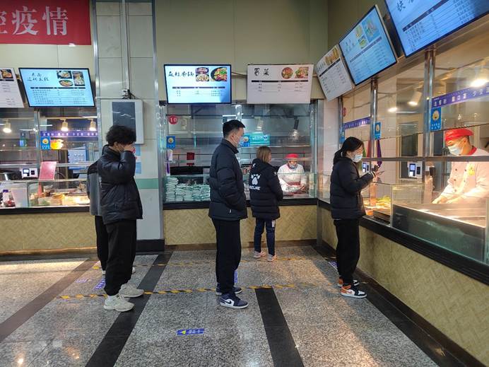 六、疫情防控期间,学生餐厅为保证正常供餐不受影响,连夜联系供货商送来蔬菜,进行严格验收,在确保食品安全卫生的同时保证广大师生正常就餐不受影响。