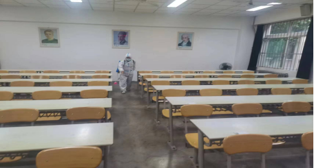 为确保考试顺利进行,营造安全健康的考试环境,工作人员严格按照校防疫办公室的要求,考前对各考场进行全面消杀;安排专人检查考场内设施设备,发现隐患及时上报并跟进维修情况;对供电设施进行全面检查并做好应急发电保障工作;统一对考试现场工作人员进行培训,压实责任,确保本次考试安全有序进行。