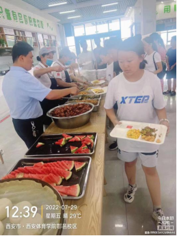 因夏季高温,食品容易变质,后勤管理处(集团)高度重视食品安全工作,要求餐厅工作人员严格把控食品原材料采购关,蔬菜、肉类等必须当天采购,确保各类食材的安全性,同时按照要求抓实抓细食品加工流程,加强质量监管,餐具及时消毒,就餐场所进行每日不少于2次的消杀、清洁、通风工作,同时定时对餐厅工作人员进行培训,强化食品安全意识,为师生提供优质的餐饮服务保障,确保夏令营期间就餐安全。