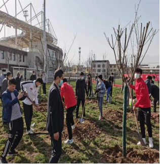 为迎接第45个植树节,3月9日上午,我校在鄠邑校区西区垒球场外围组织开展义务植树活动,用实际行动践行“绿水青山就是金山银山”的理念。