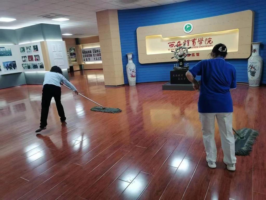 各中心工作人员每日做好学生公寓、教学楼、场馆(地)、学生餐厅等公共区域卫生清洁工作;加大安全巡查力度,全面做好我校安全稳定工作;学生餐厅不断丰富菜品,在做好食品安全工作的前提下,满足师生多样化需求;做好学校垃圾清运工作,日产日清,减少细菌滋生与传播;不断提高场馆服务保障能力,满足师生教学训练需要;加强水电燃气等设施设备检查,确保设施设备平稳运行,工作人员24小时在岗,确保我校供水、供电等发生突发状况时及时抢修,全力做好我校师生的服务保障工作。