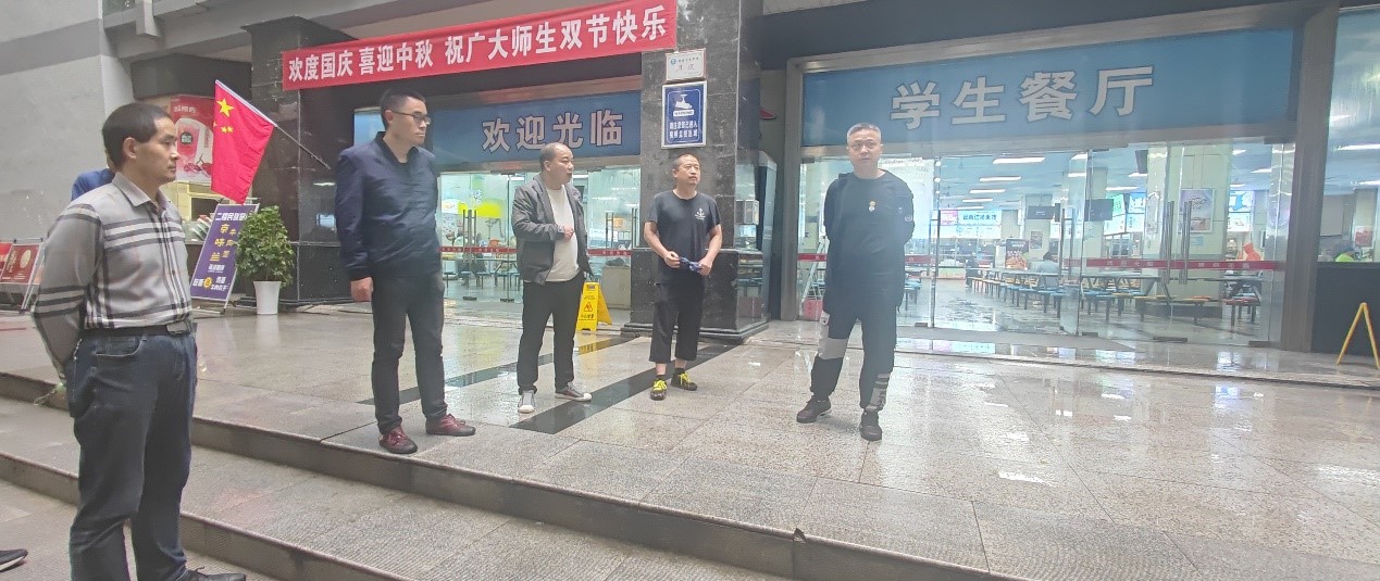 国庆、中秋将至,为做好节假日期间后勤保障工作,有效防范和避免安全事故的发生,9月27-28日,后勤管理处(集团)处长许伟带领各中心主任对鄠邑、含光两校区开展节前安全检查工作。