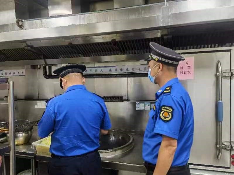 5月8日,碑林区城市管理执法局来我校对学生餐厅油烟排放情况进行督导检查。