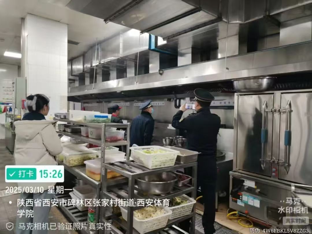 碑林区城管部门对我校学生餐厅进行了油烟管道安全检查,确保学院餐厅的油烟排放符合环保标准,保障师生的健康和安全。