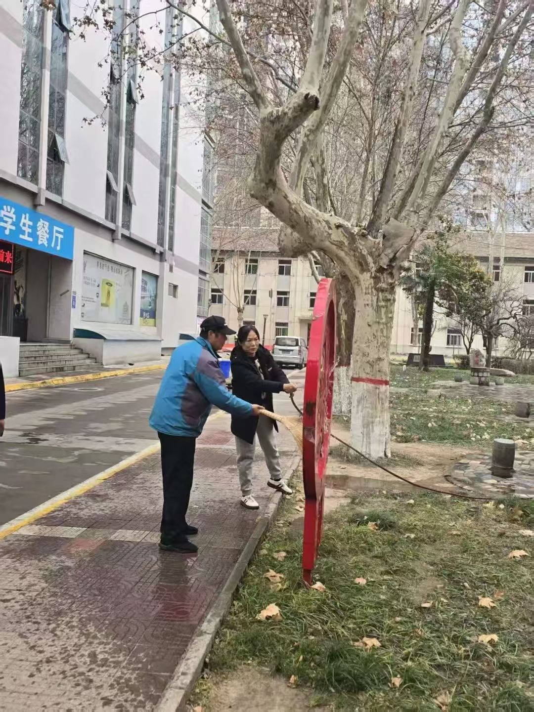 雷振华副校长带队后勤管理处、保卫处、学工部、基建处、离退休处、开发办公室等部门对校园内多个重点区域风险多发易发点位进行排查,安全通道、消防设施设备、消防通道进行常态化检查。