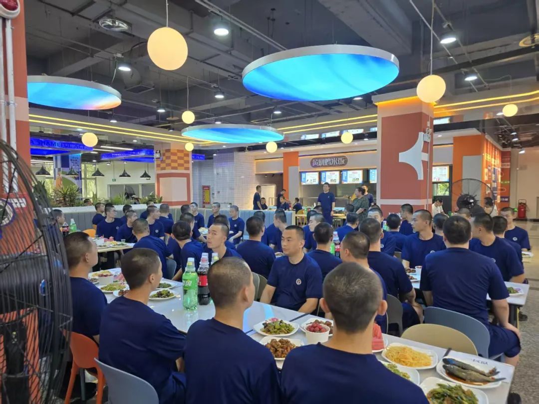 今日(8月1日),值此中国人民解放军建军98周年之际,西安体育学院后勤管理处带着对消防救援队伍的崇高敬意与深切关怀,为正在学院内参加2025年西安市专职消防员岗前培训的全体学员精心组织了一次暖心的节日慰问活动。为在酷暑中坚持高强度训练的消防员们送上加餐,并向他们致以诚挚的节日问候。 慰问活动中,后勤管理处特意为参训消防员们准备了丰盛可口的节日加餐,用美味的饭菜传递着真挚的心意。开餐前,综合科科长罗海娟发表了简短而热情的讲话。向全体参训消防员致以最诚挚的节日祝福,表达对“火焰蓝”的深深敬意。 此次慰问活动,不仅是一次简单的加餐,更是西安体育学院服务社会、致敬英雄的具体实践,在神圣的建军节里,为即将投身消防救援事业的“新蓝”们注入了强大的精神动力,充分体现了校地协作共育消防人才的良好氛围。