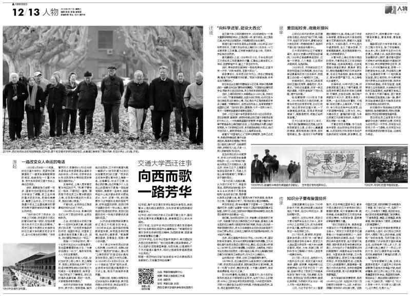 【编者按】1月17日,南方都市报人物版推出两个整版专题报道“交通大学西迁往事:向西而歌 一路芳华”,并同时通过该报新媒体平台广泛传播,现将内容转载如下: