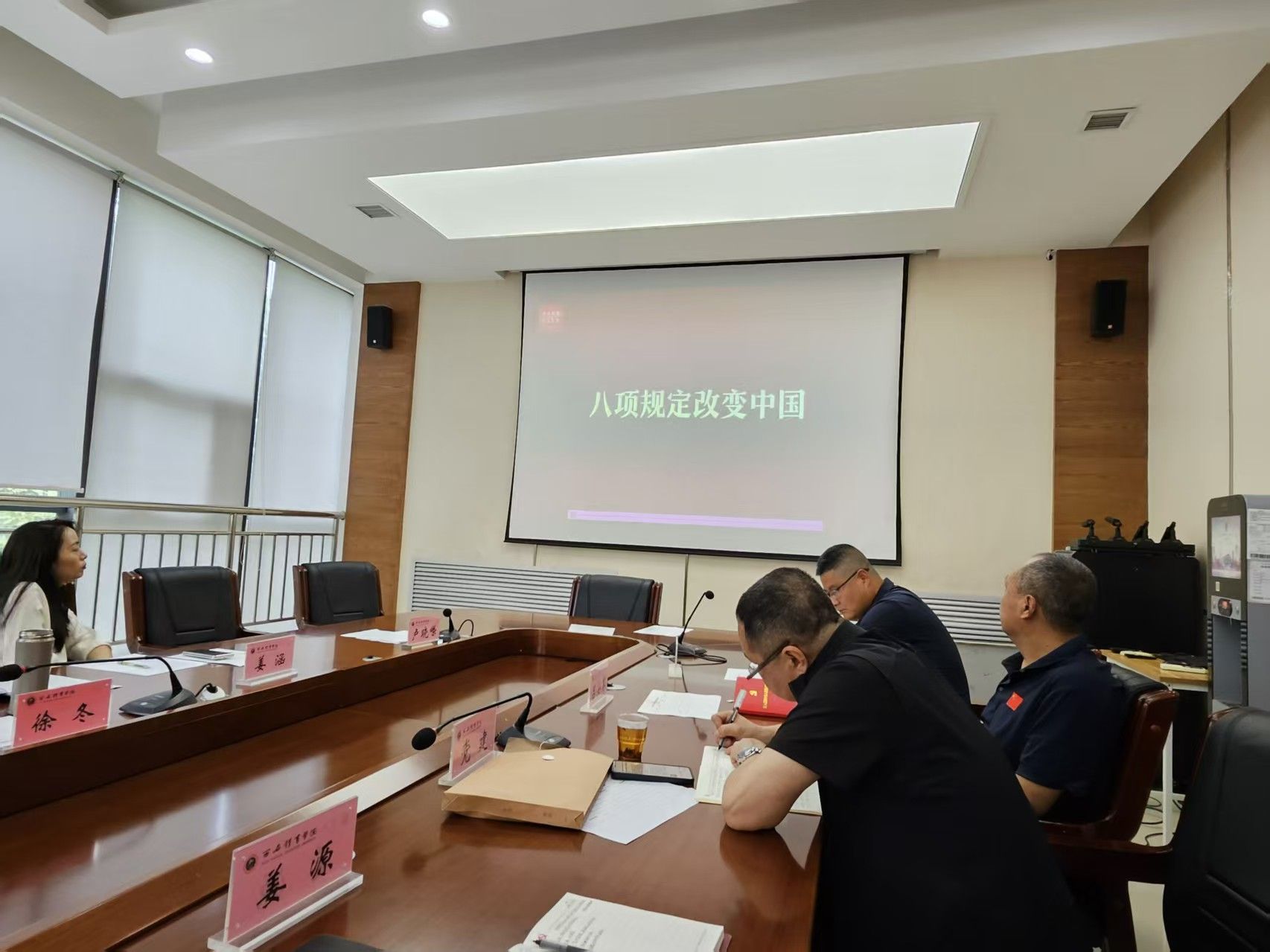 为深入贯彻校党委《深入贯彻中央八项规定精神学习教育实施方案》要求,5月26日8:30,后勤党总支在含光校区2号行政办公楼六楼会议室组织召开中心组学习(扩大)会暨学习教育读书班,含光校区在岗全体党员干部参会。 会议通报了后勤党总支两会以来学习教育开展情况。随后,全体人员集体学习习近平重要文章《锲而不舍落实中央八项规定精神,以优良党风引领社风民风》(1-5),并观看《八项规定改变中国》第一、二集,从理论和案例中深刻领会八项规定的重大意义。。 会议还通报了省内外高校后勤领域违反中央八项规定精神典型案例,剖析基层“四风”10种隐形变异表现,传达中央学教专发16号、陕学教专发14号文件精神及校工作专班近期工作提示,以真实案例敲响警钟,强化纪律意识。 最后,后勤党总支书记王深宏发言,强调要以此次学习为契机,将中央八项规定精神贯穿后勤工作始终,营造风清气正的工作氛围。 后勤管理处将持续推进学习教育走深走实,以优良作风推动后勤服务高质量发展。