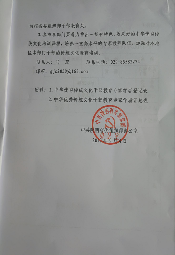 附:中共陕西省委组织部《关于推荐中华优秀传统文化干部教育专家学者人选的通知》