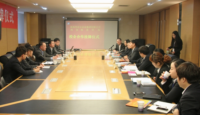 在洽谈会中,双方各自介绍了本单位的相关情况。陕西丹尼尔集团总裁王国庆介绍了集团基本情况,并表示在新形势下企业与学校都应转变观念,在校企联合上寻找新方法、找到契合点,建立大学生创业孵化基地。同时,陕西丹尼尔集团欢迎体院优秀毕业人才来集团工作。