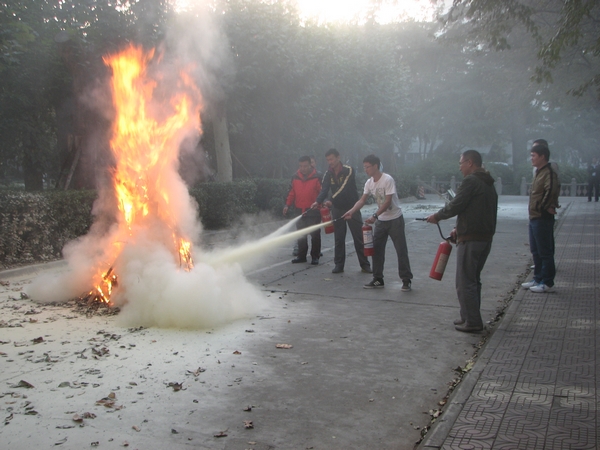 报告结束后,保卫处积极组织师生进行消防现场演练。通过演练,同学们学会了如何正确使用灭火器。同时,保卫处还利用横幅、展板、宣传单等方式,宣传消防知识,受到师生的好评。