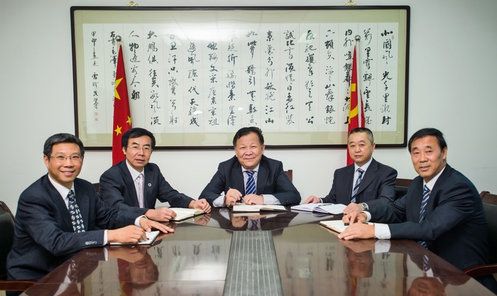 学院领导合影 左起:副院长文立新、党委副书记朱元利、党委书记吴长龄、院长周里、副院长雷新声