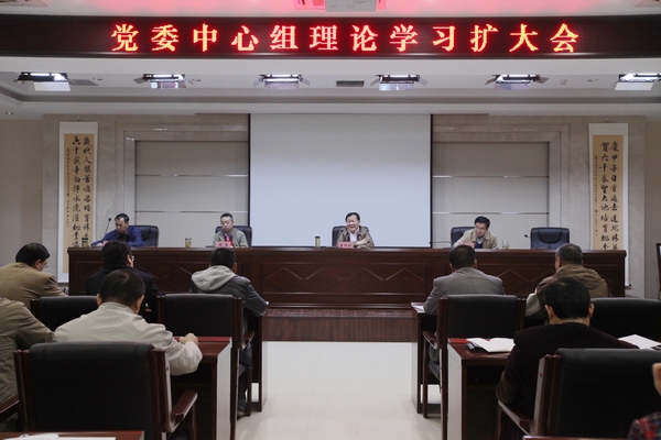 本网讯 10月30日上午10时,学院在网球馆六楼大会议室召开了党委中心组理论学习扩大会,认真组织学习党的十八届四中全会精神。会议由党委书记吴长龄同志主持。校领导周里、朱元利、雷新声和党委委员陈彦、刘新平,院长助理段秋学、徐飞荣及全院副处级以上干部、正高级专业技术人员100余人参加了学习。