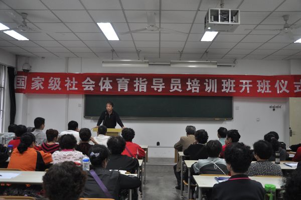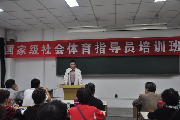 本网讯9月14日,2014年陕西省国家级社会体育指导员培训班在我院正式开班。陕西省体育局群体处副调研员王劲松,陕西省体育局群体处谭少春,我院社会体育与休闲体育系主任郑文海、总支书记郭春玲、副主任杨建设等同志参加开班仪式。