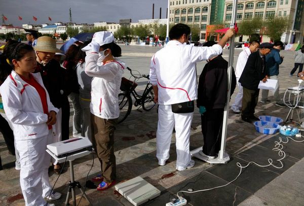 我院大学生志愿者在青海省海西州为当地居民进行体质测量
