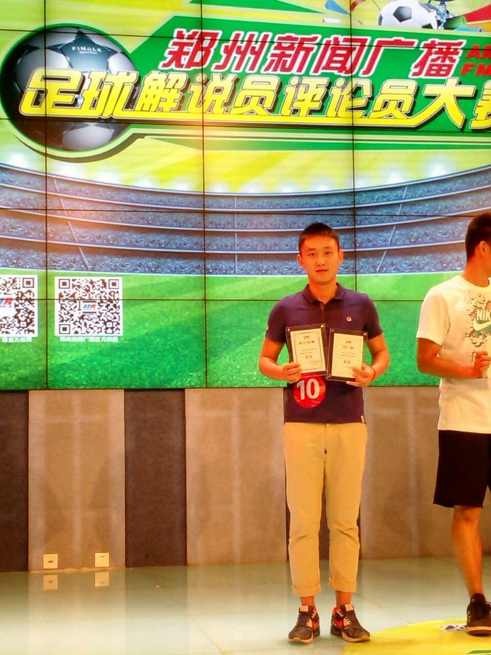 本网讯6月10号,郑州新闻广播足球解说员评论员大赛决赛在郑州人民广播电台一号演播厅进行,我院体育传媒系播音专业大二学生王言通过自备解说、指定解说、PK挑战赛、即兴演讲四个环节的展示,最终取得了第二名的好成绩,并获得了郑州新闻广播特约体育主持人、体育评论员的聘书,将在巴西世界杯期间,做客郑州新闻广播世界杯特别节目。