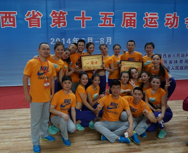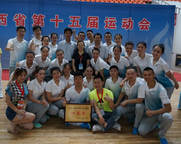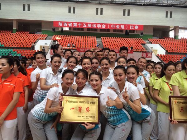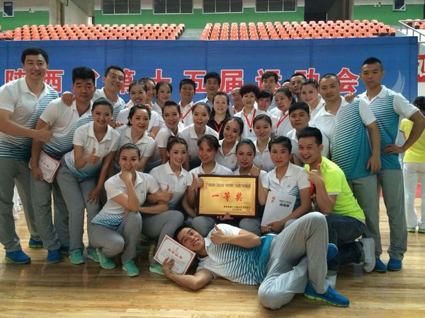 本网讯我院体育艺术系30名教师,代表陕西省教育系统参加了陕西省第十五届运动会“体育彩票杯”(行业组)健身秧歌、广场健身舞、广播体操三项比赛。比赛于2014年6月18日—24日在宝鸡市体育馆举行。