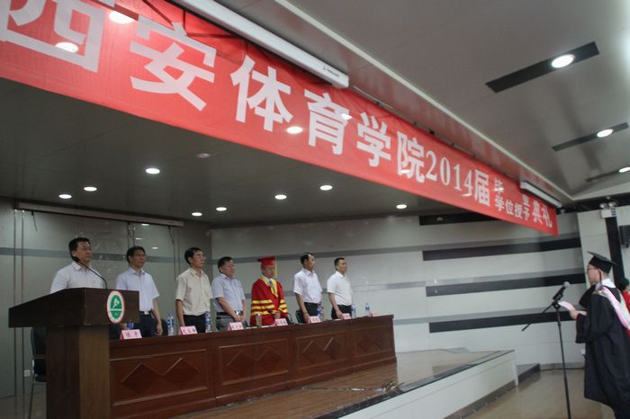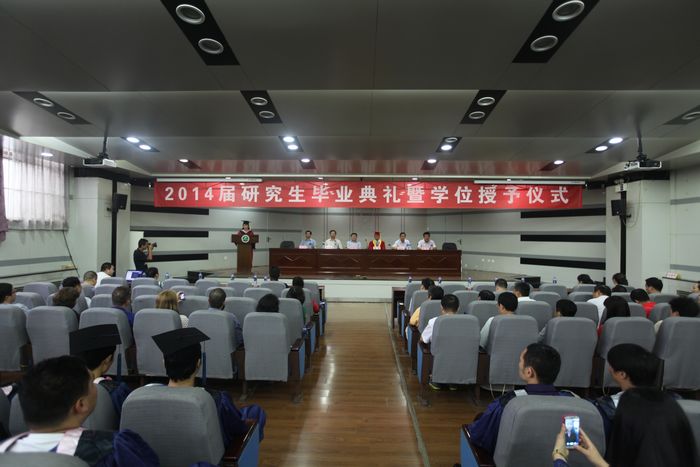上午的研究生毕业典礼上,研究生部主任教授宣读《西安体育学院学位委员会关于授予2014届研究生硕士学位的决议》,体育艺术系主任匡小红教授代表导师致贺词,学生代表高旭致答谢词。
