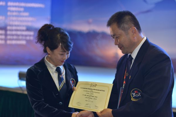 中国健美协会秘书长古桥为王丽君老师颁发证书
